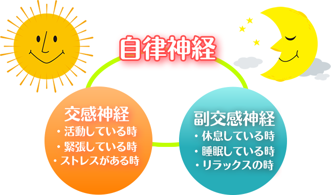 交感神経(活動)と副交感神経(リラックス)に分かれており、自律して働いている神経です。